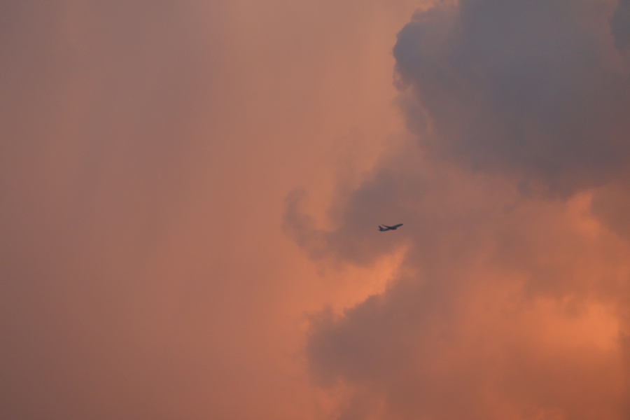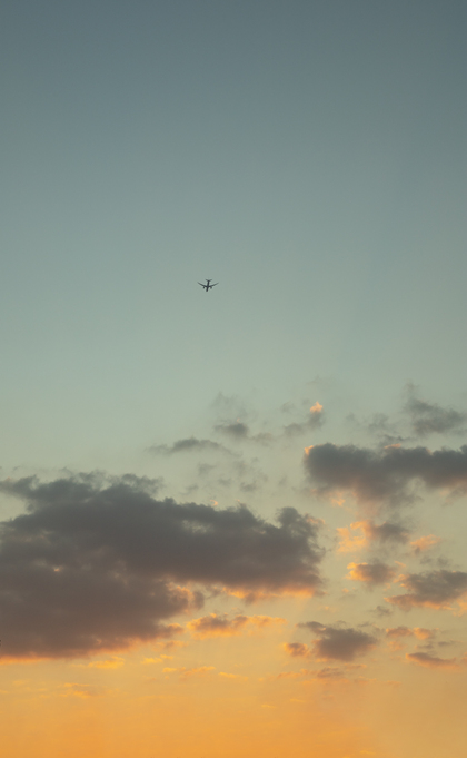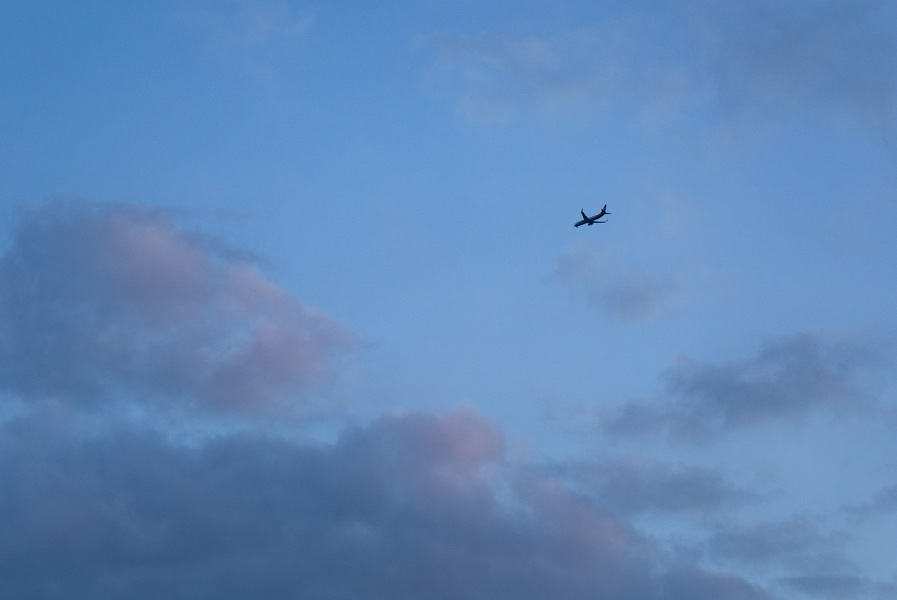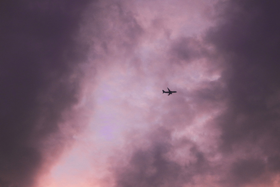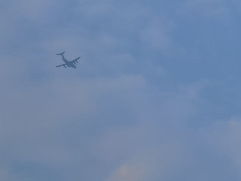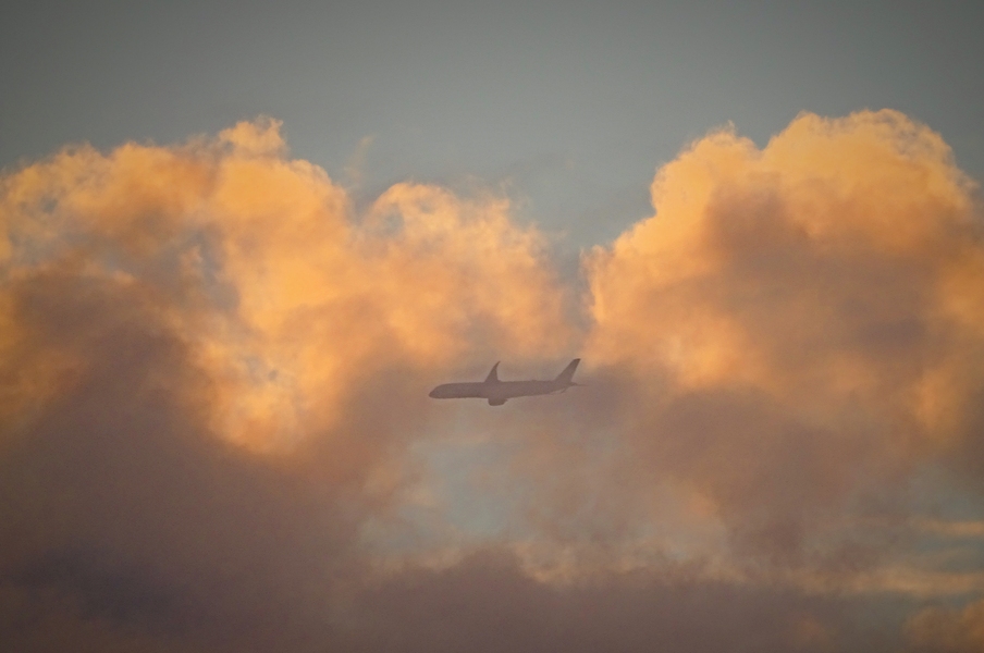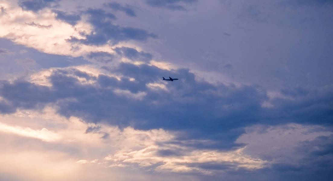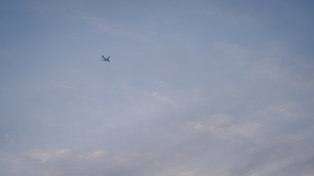 头顶的飞机和云彩