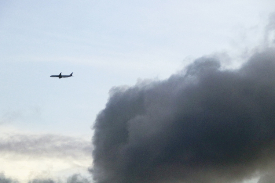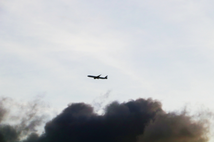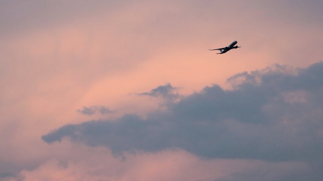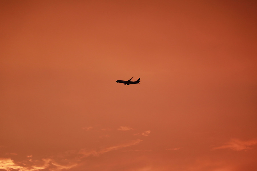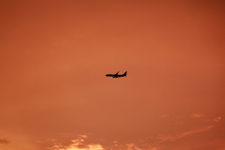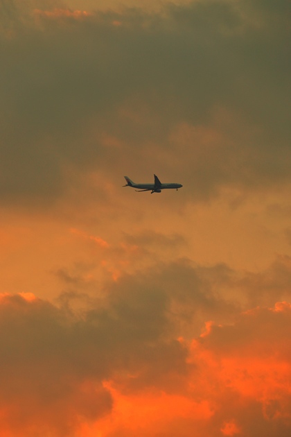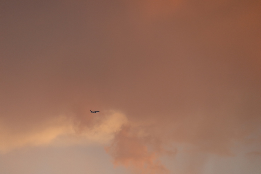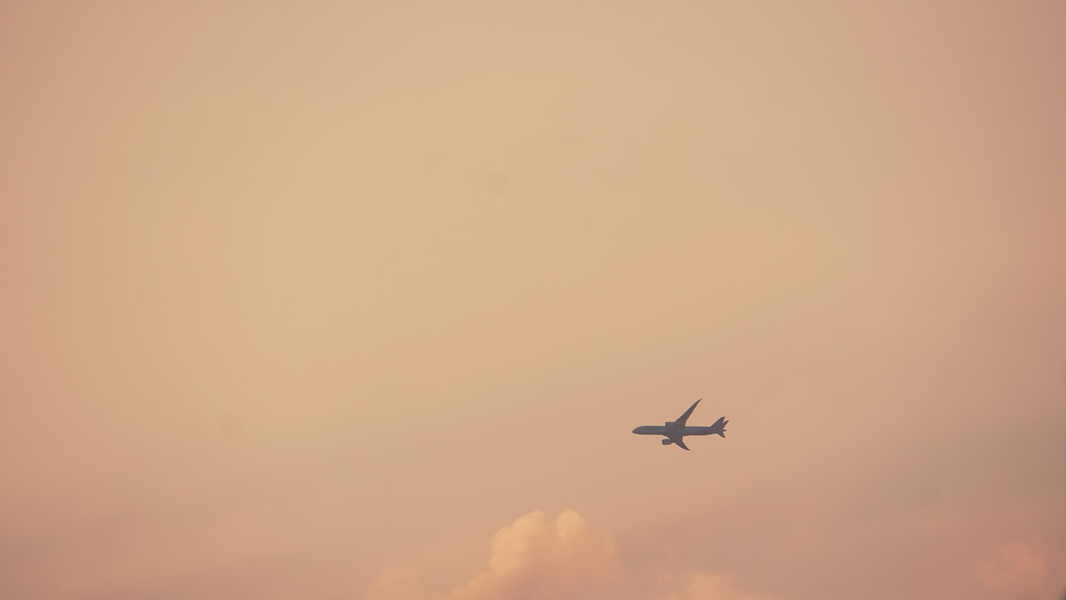 头顶的飞机和云彩