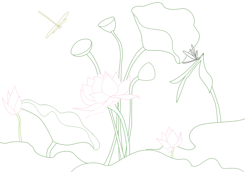 绘画过程,池塘边熟睡中的娃娃,原创插画