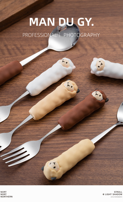 电商摄影|南京拍摄| 卡通羊驼304不锈钢餐具果盘叉勺