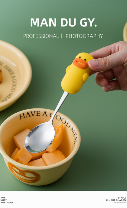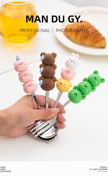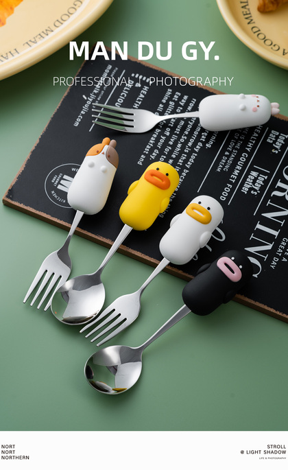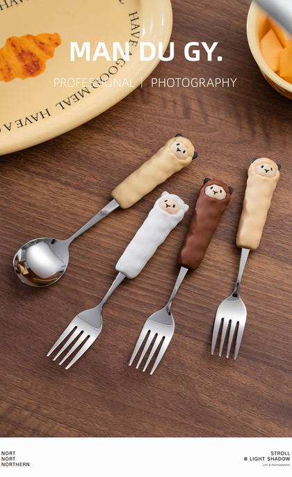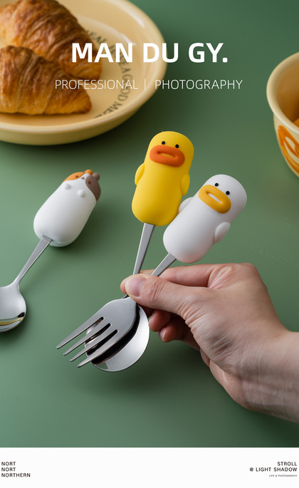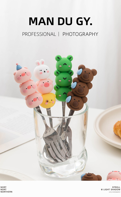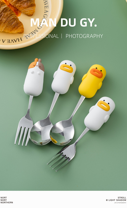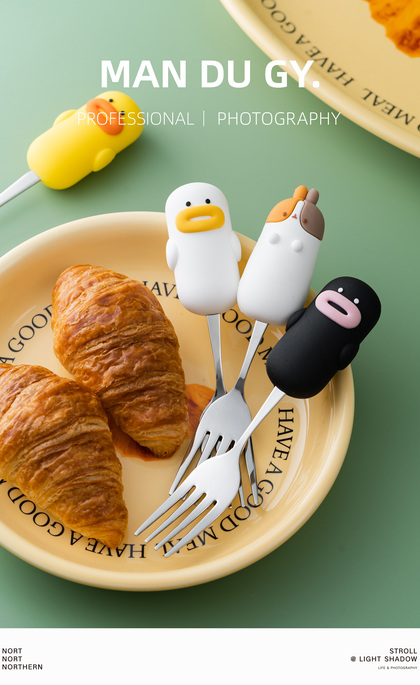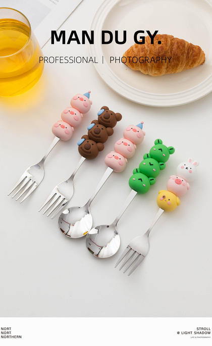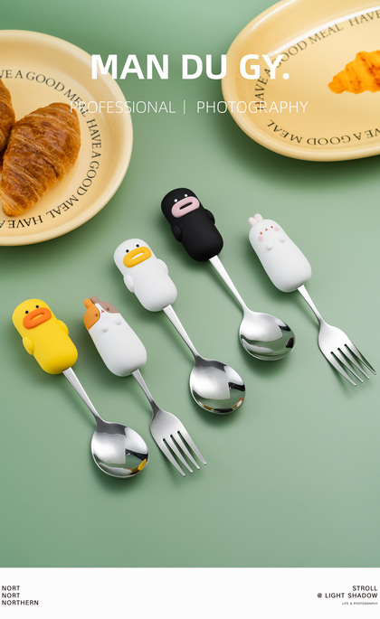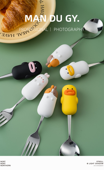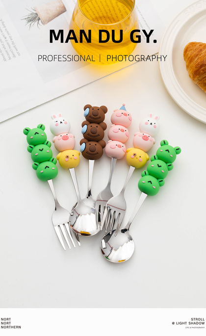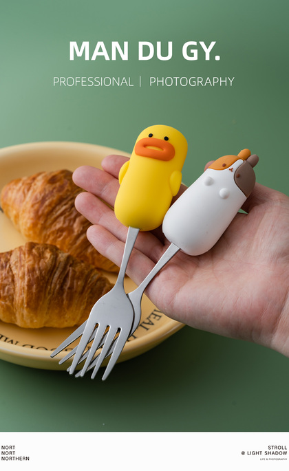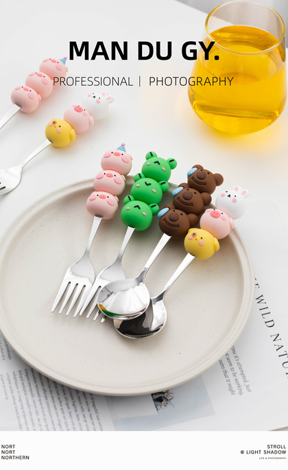 电商摄影|南京拍摄| 卡通家用304不锈钢餐具果盘叉勺