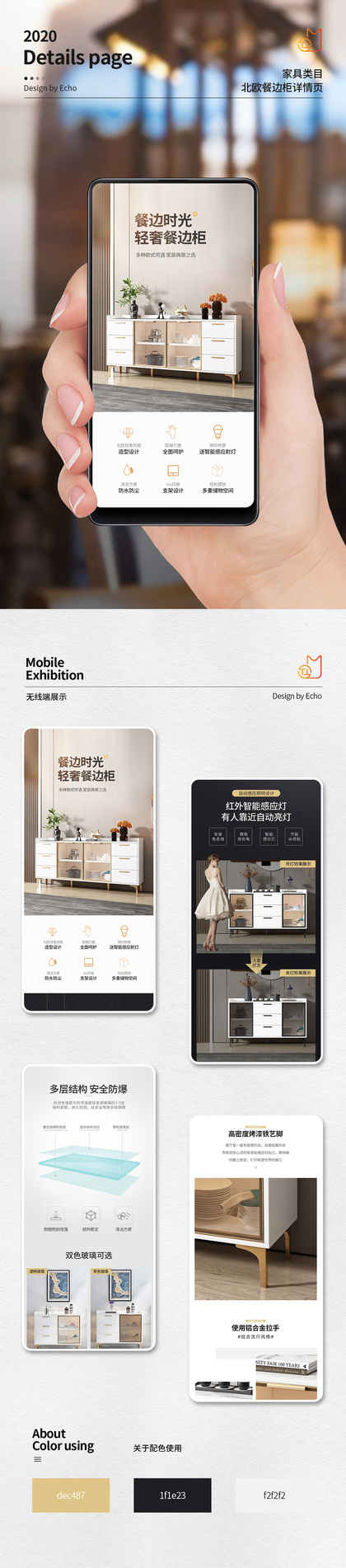 电商家具北欧轻奢餐边柜详情页海报描述页