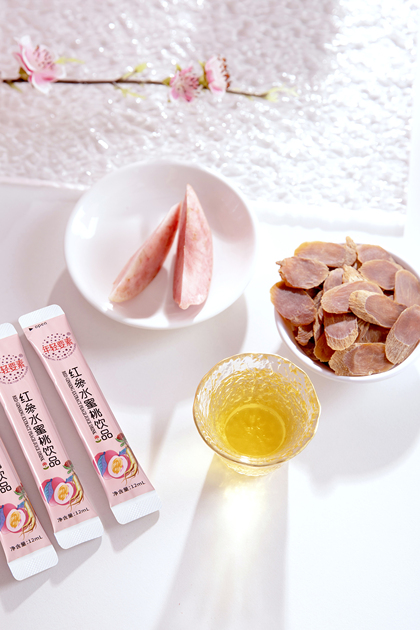 红参水蜜桃饮品及酵素粉拍摄