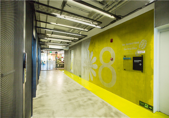 腾讯众创空间写字楼木丝板内部通道案例分享