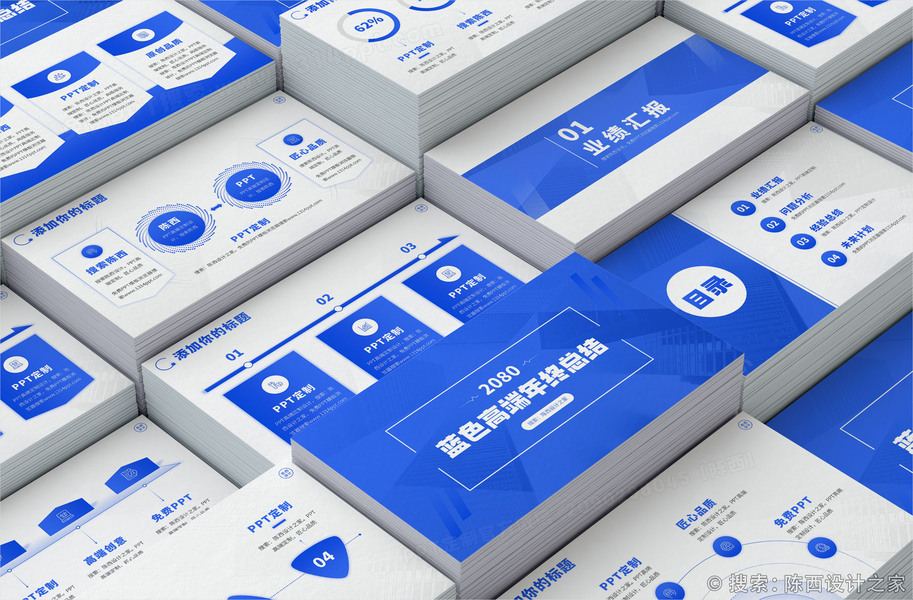 超赞!蓝色系工作总结述职汇报高端PPT模板全套!