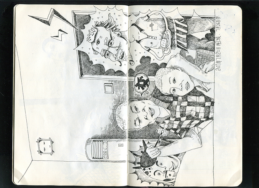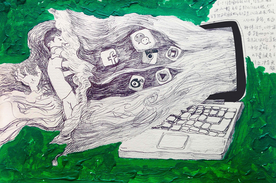 手绘黑白创意线描