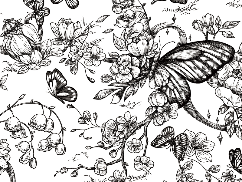 蝶舞花间|茹依纹风格印花-蝴蝶插画