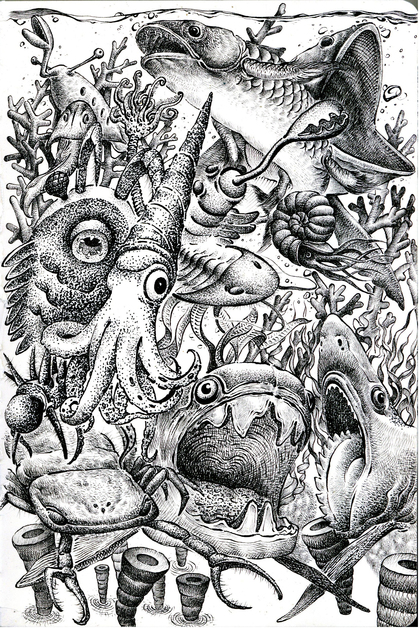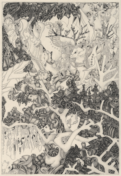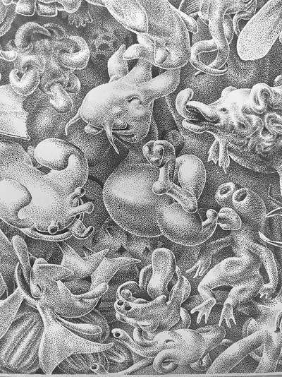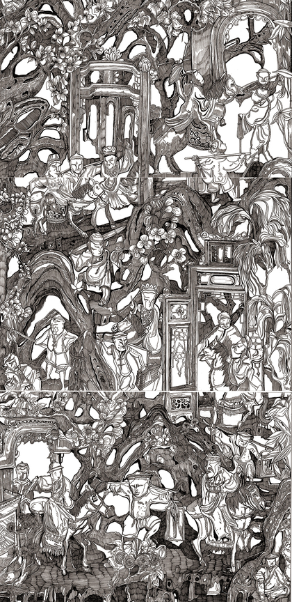 “窒息微观”系列三号实验作品—— 《百俘荒汀》 65小时 潜意识推画 创作过程