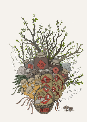 茶叶罐标签插画