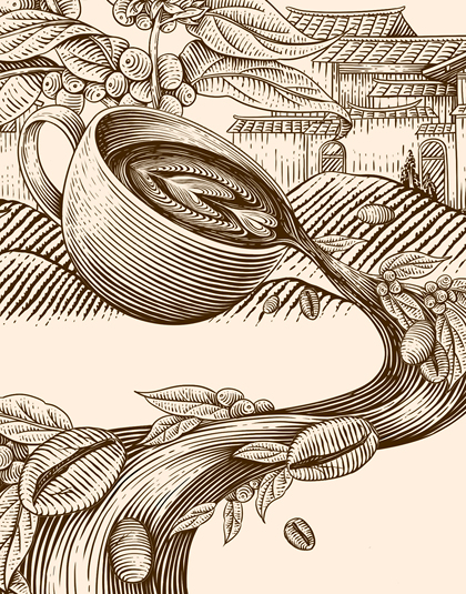 咖啡系列 | 版画风格插画