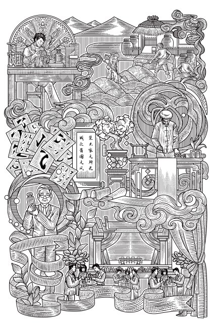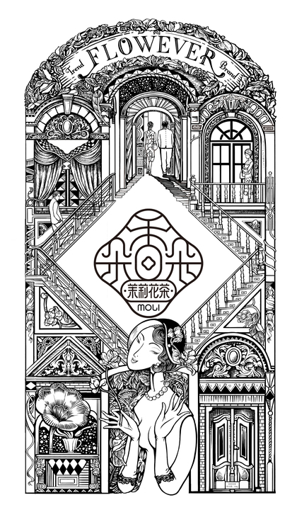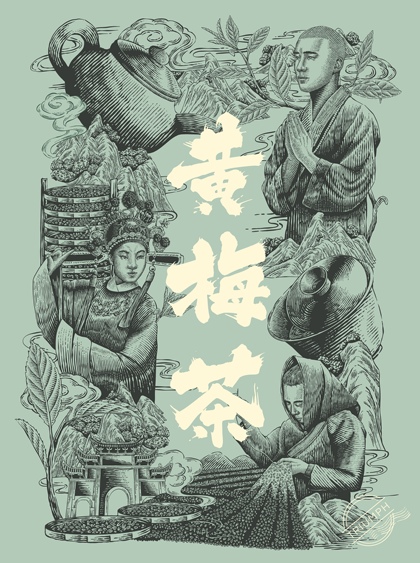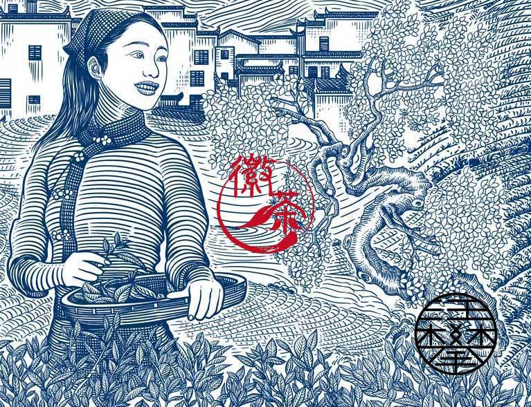 茶叶铜版画风格|徽州茶包装插画|黄山毛峰包装设计