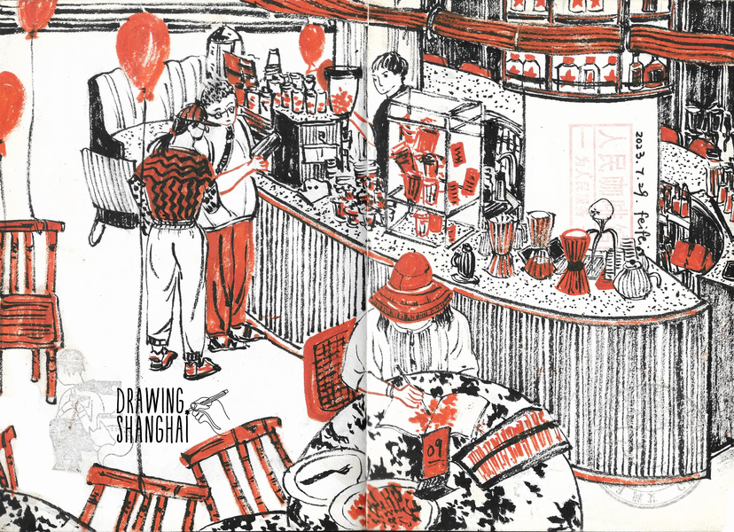 龙吟茶包装插画设计(动物与茶叶)-版画风