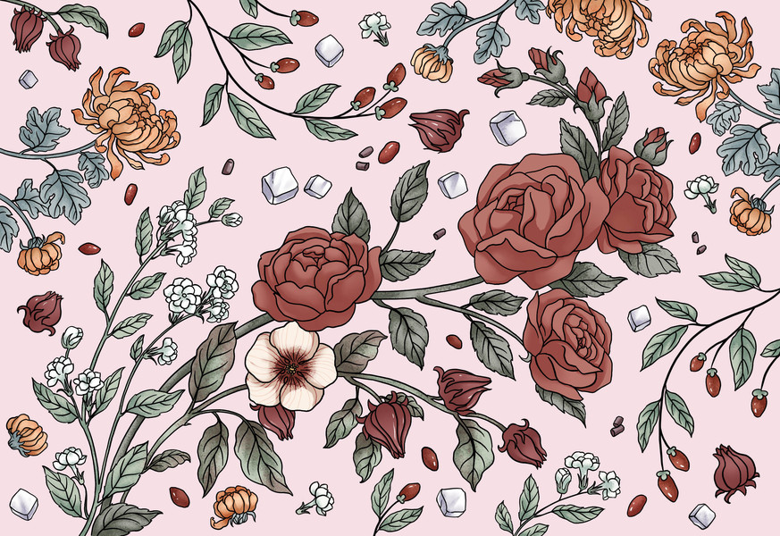 线描植物·云南花草茶包装插画