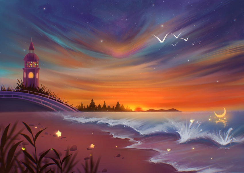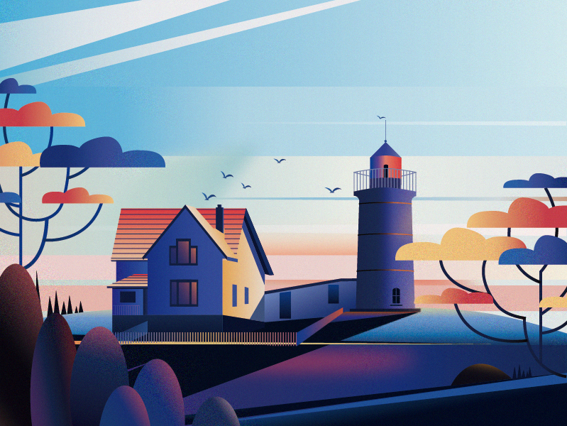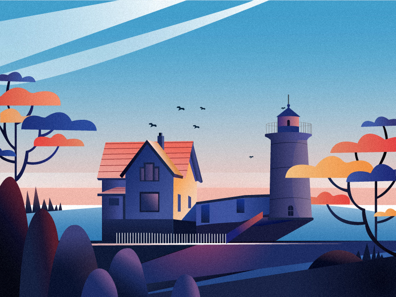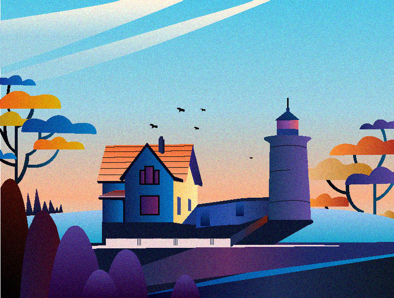 噪点插画-黄昏