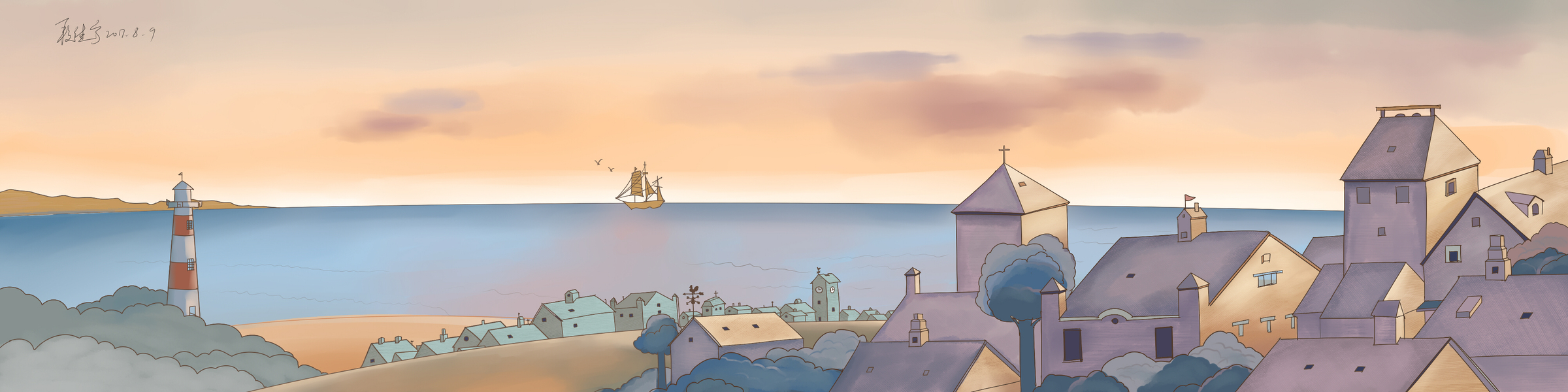 静谧村庄插画练习