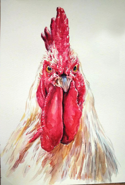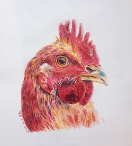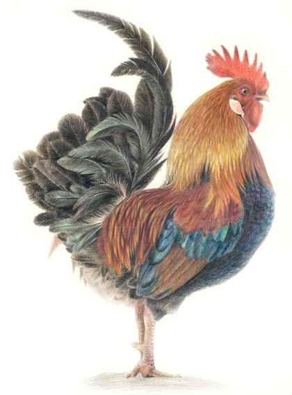 彩铅手绘公鸡