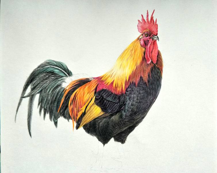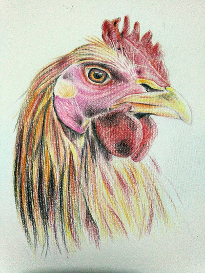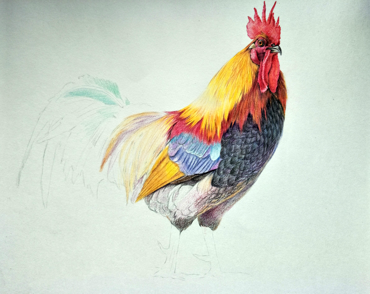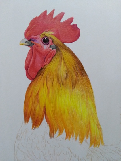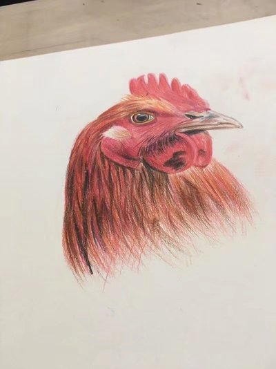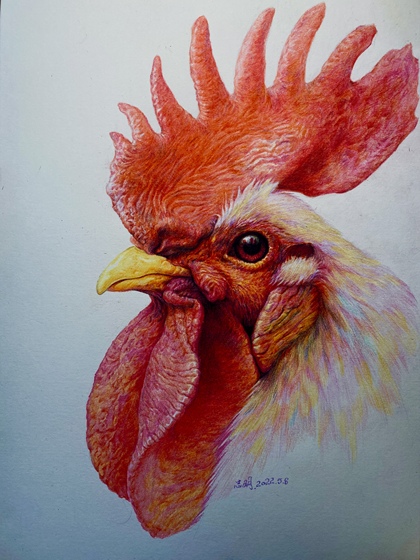 彩铅画公鸡