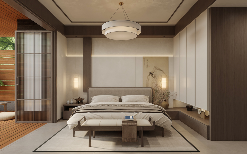 山屿湖现代别墅私宅空间女儿房SU模型下载