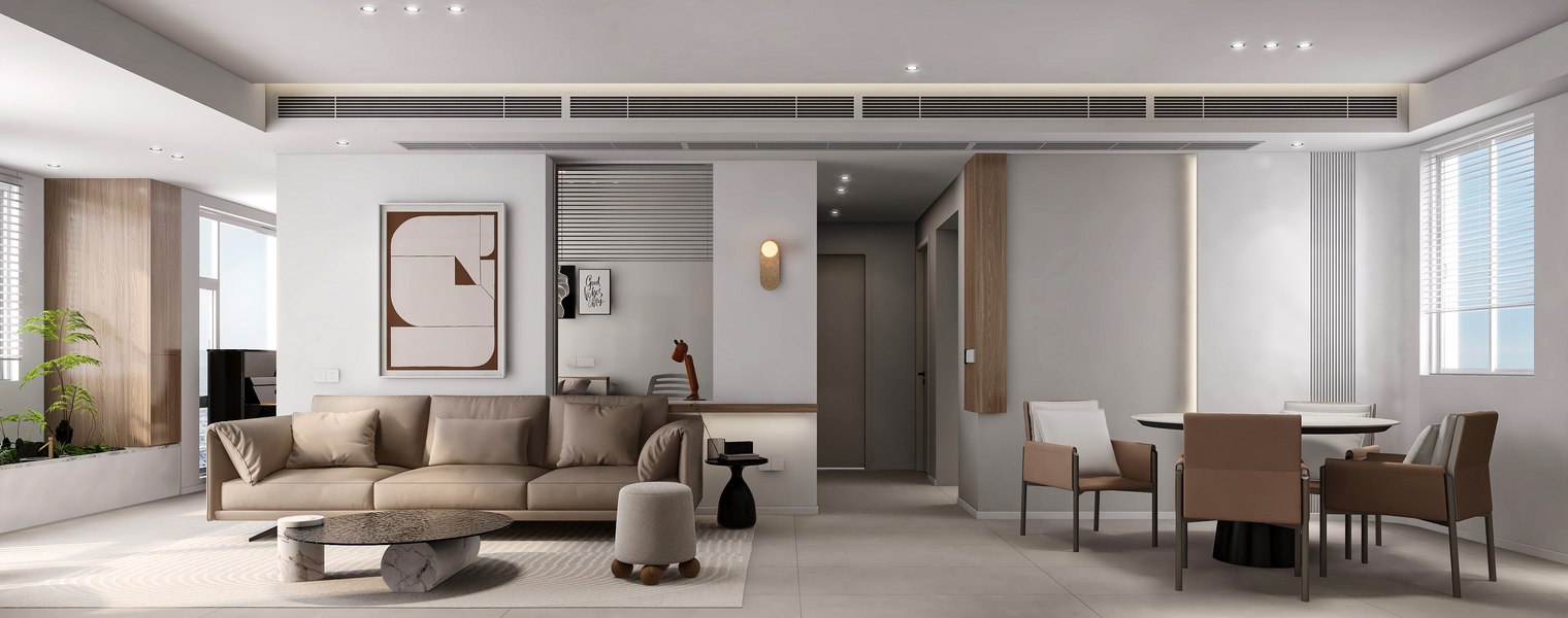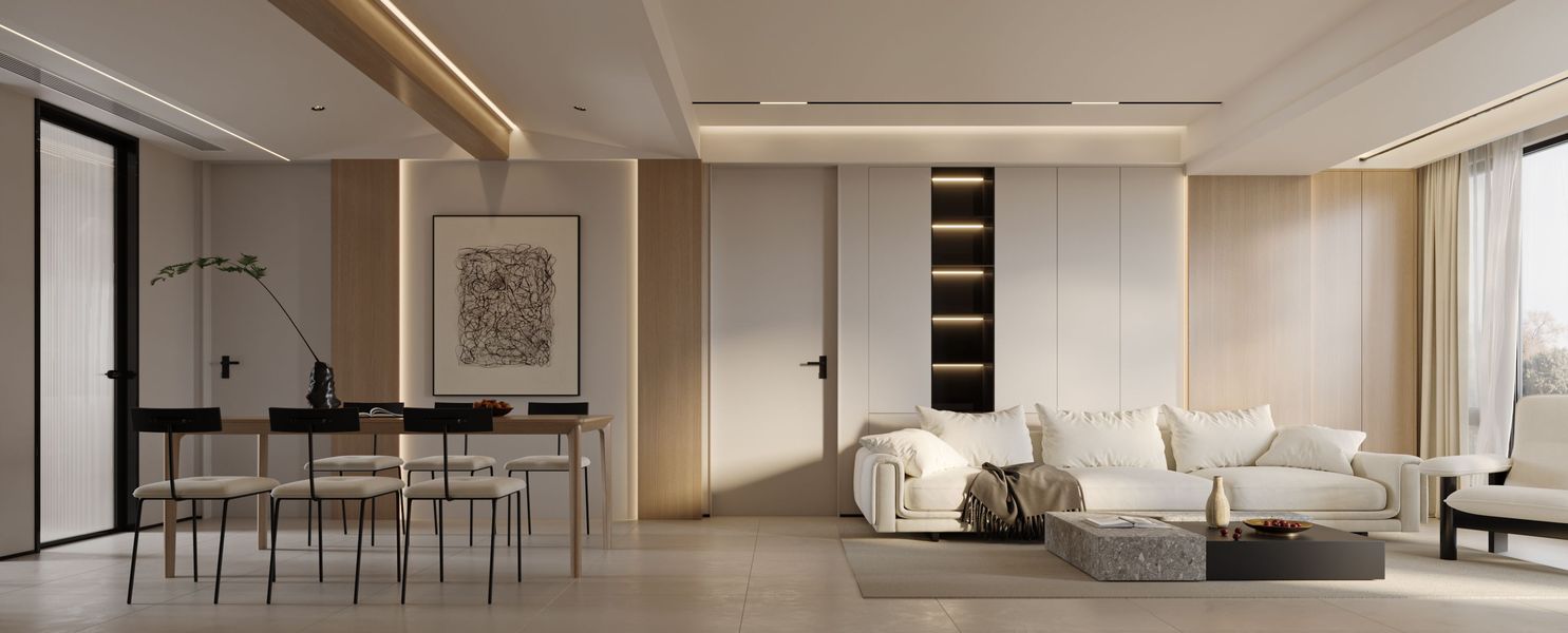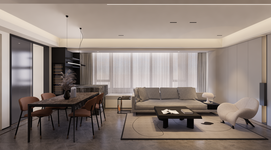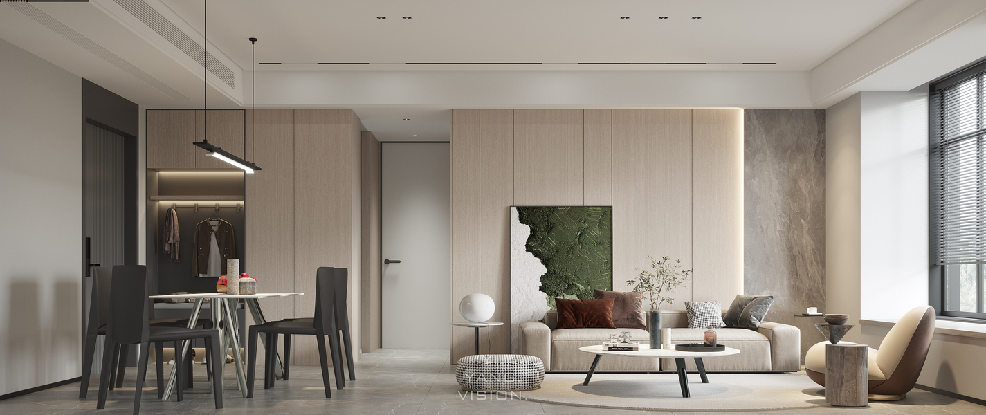 近日渲染现代侘寂风,客厅