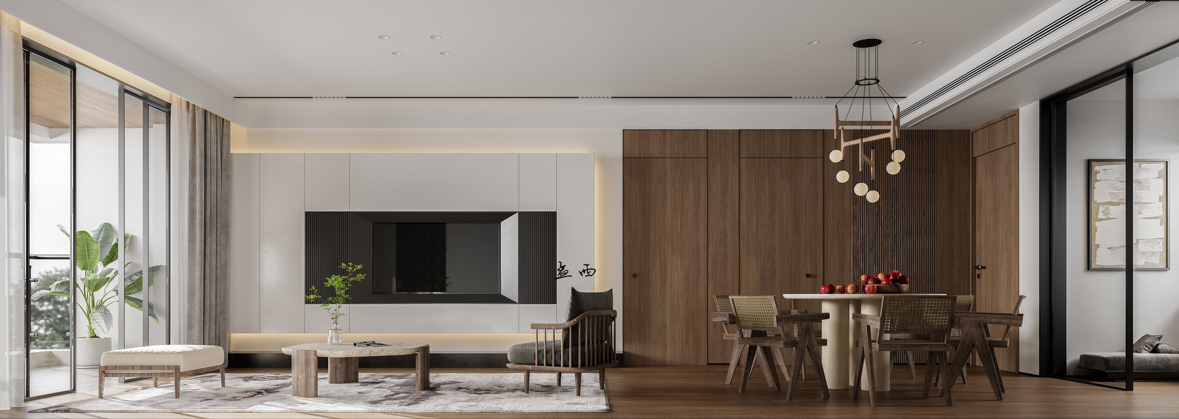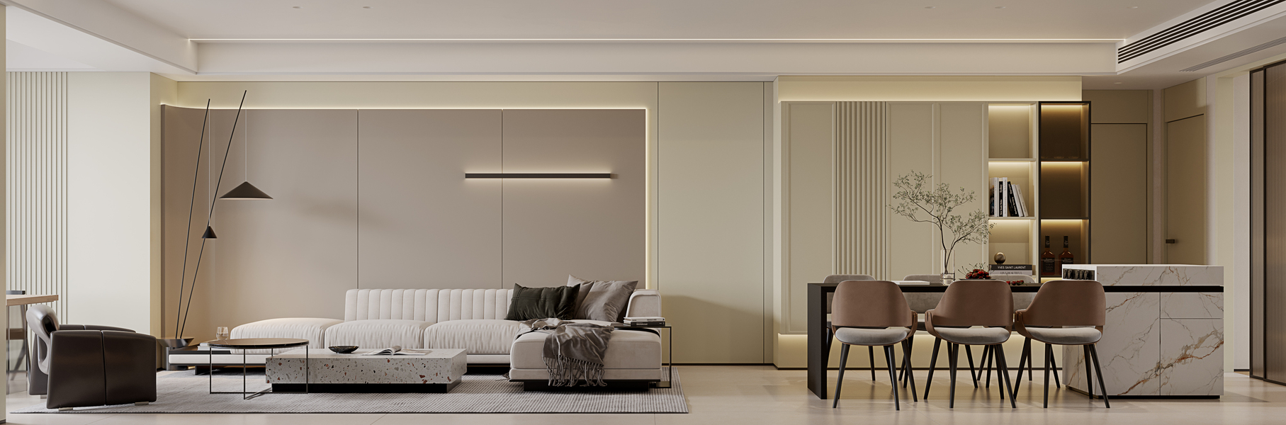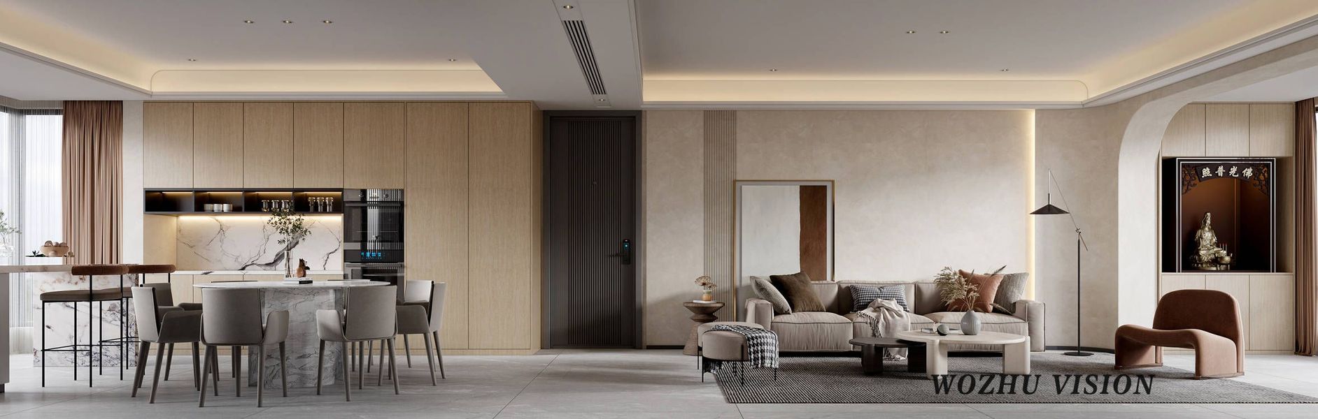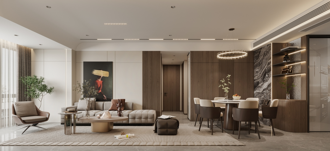 近日渲染现代侘寂风,客厅
