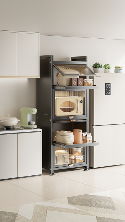 3D厨房调料锅置物架轻奢玻璃渲染C4D