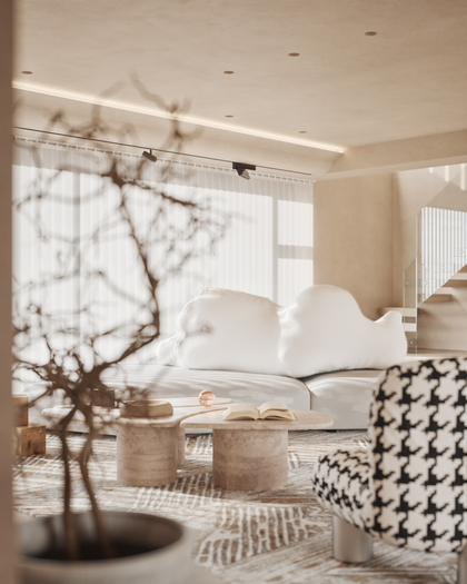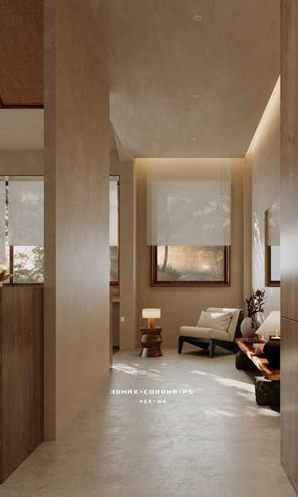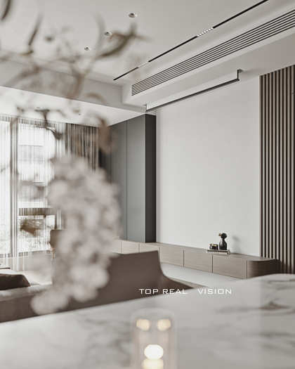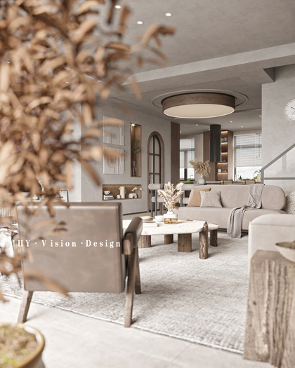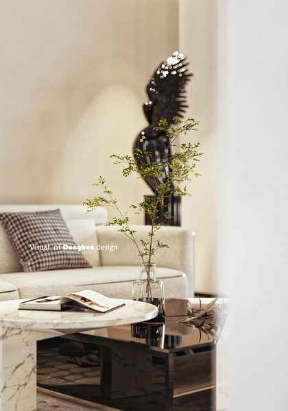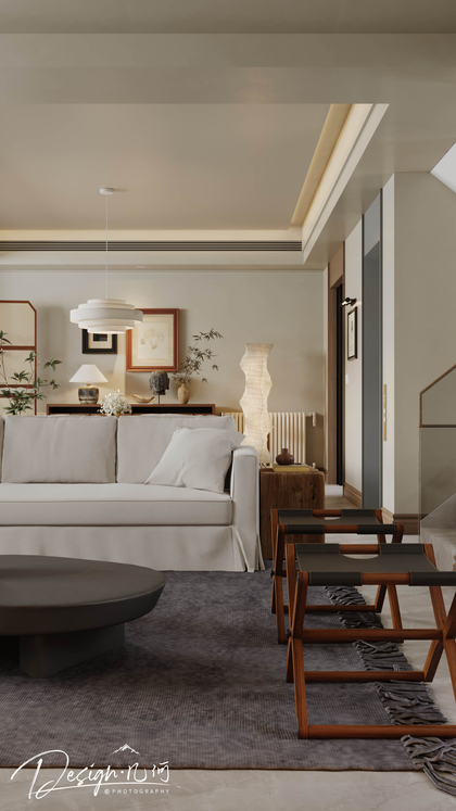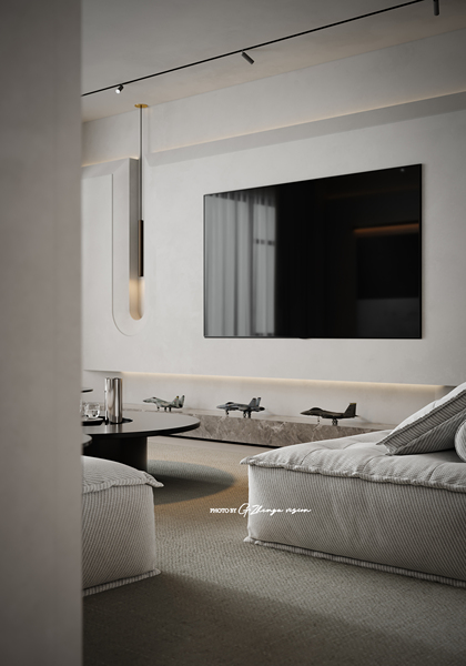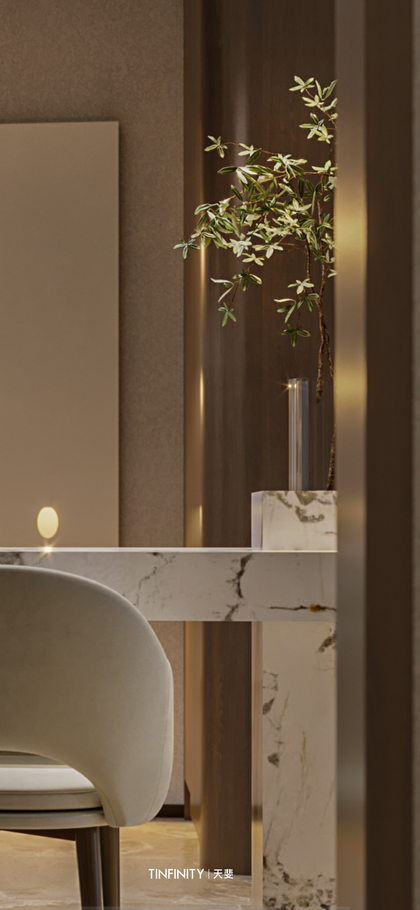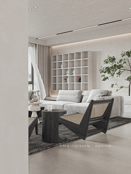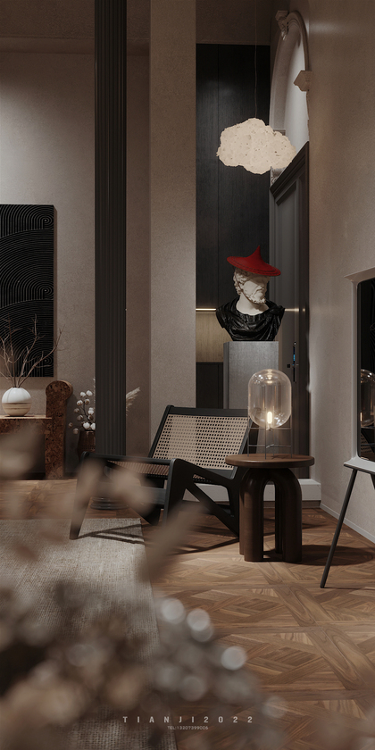 几何空间视觉表现 | 国建红郡中古风客餐厅
