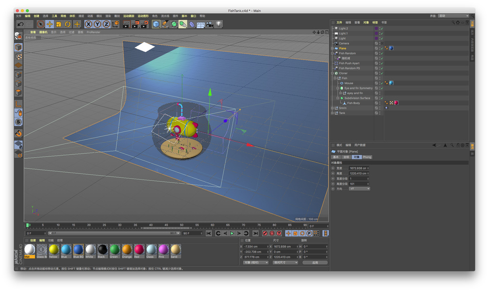 Cinema 4D 教程内的小动画 小潜艇 小鱼缸 FishTank