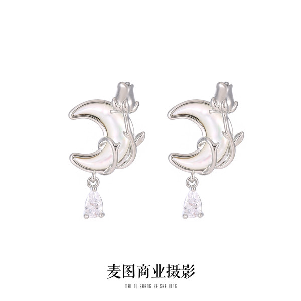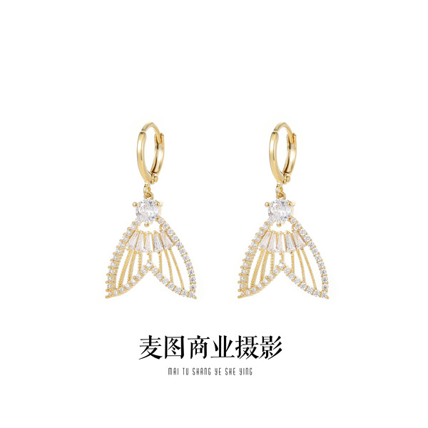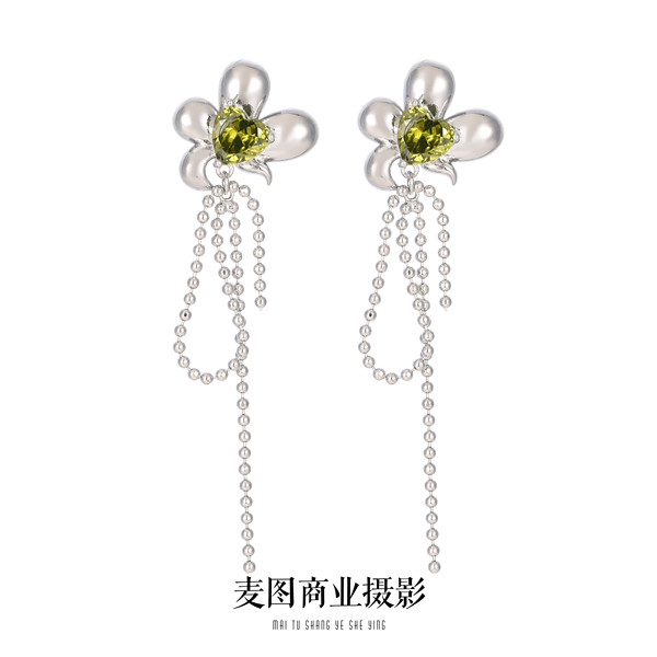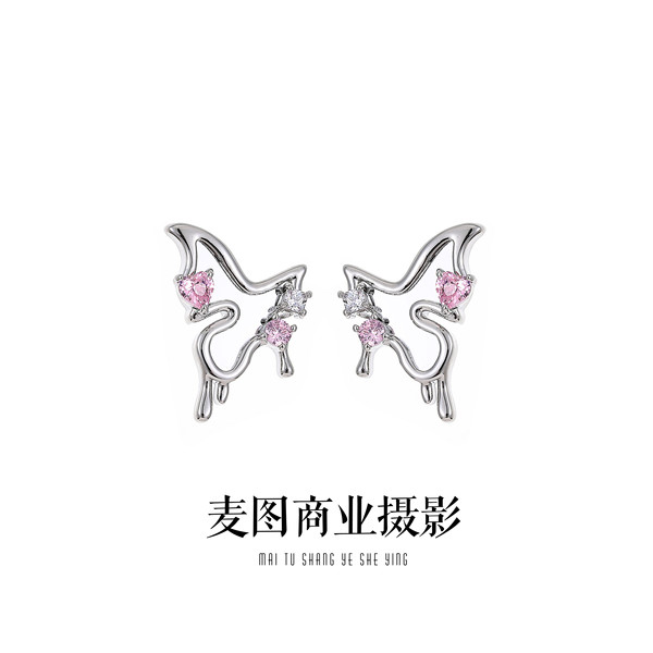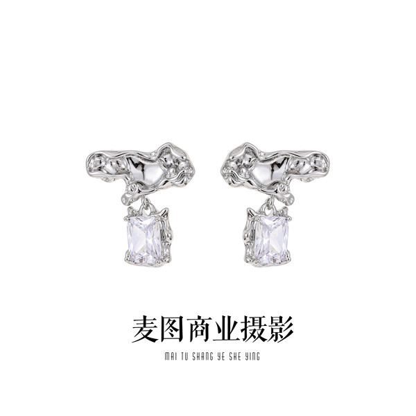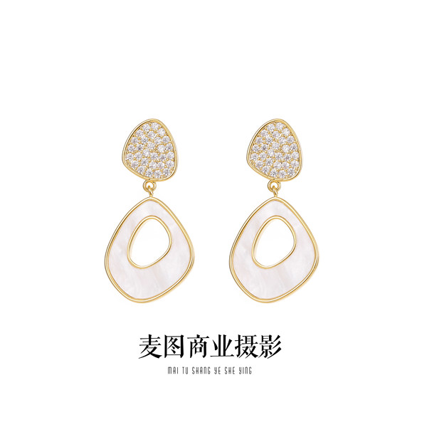 首饰饰品白底耳饰静物平铺拍摄 珠宝饰品静物拍照 模特