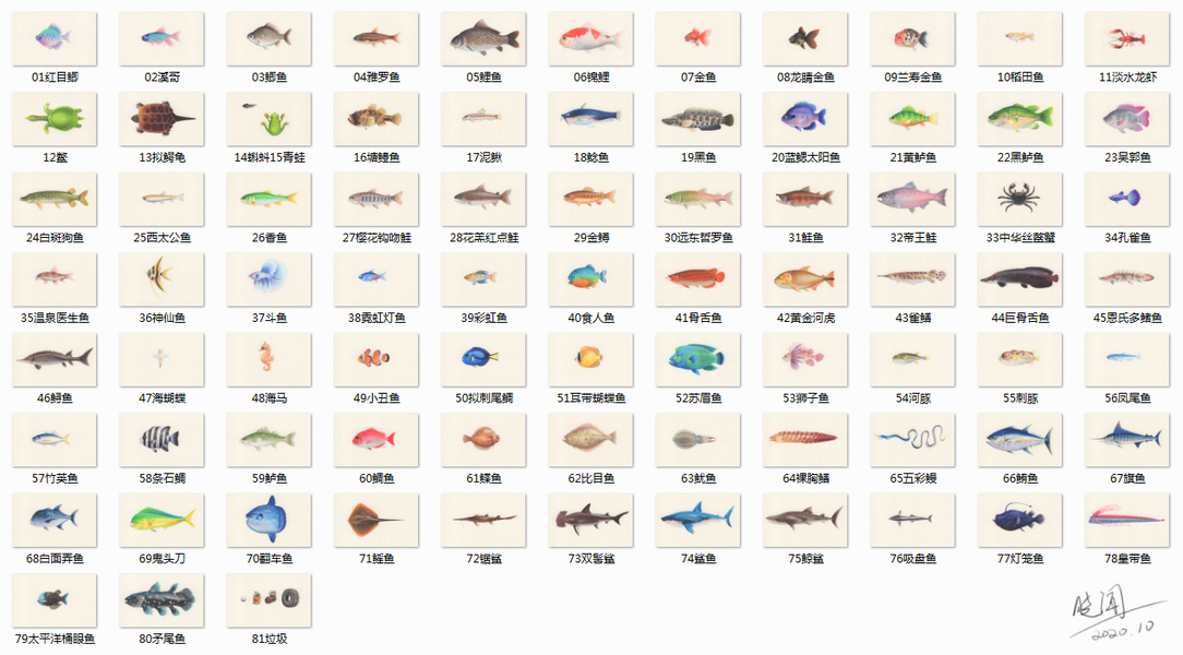 动森鱼类全图鉴 - 彩铅版