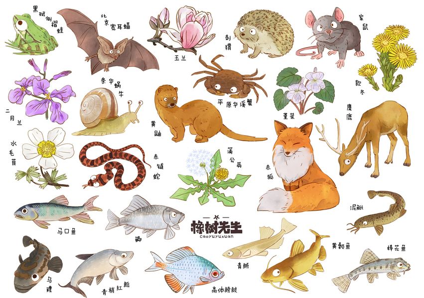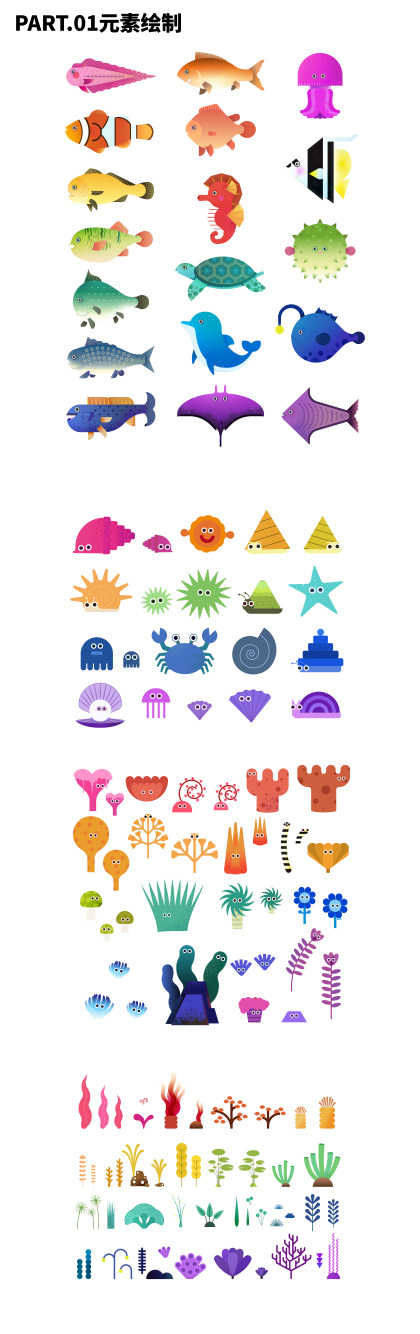 海生物集合~水彩手绘