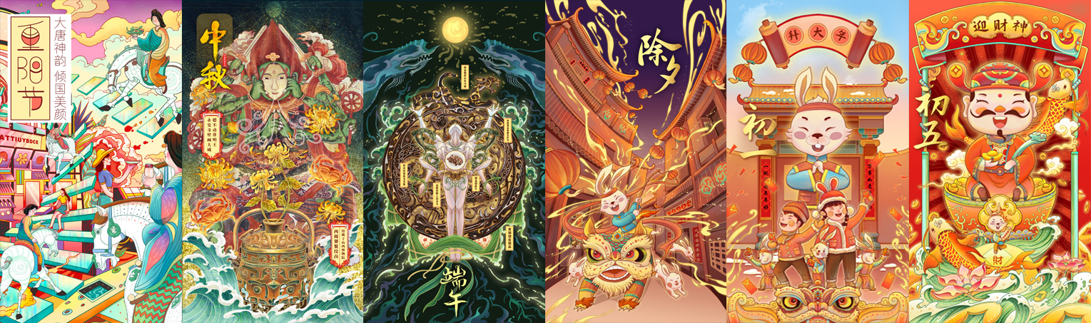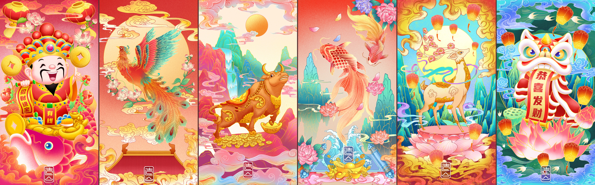 2024龙年限定IP插画设计|中国龙×神仙喜迎新年