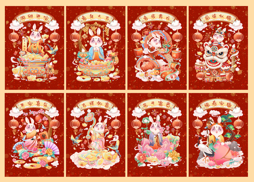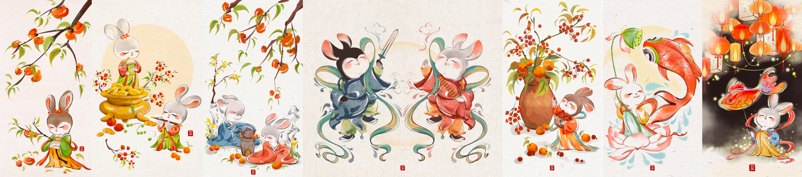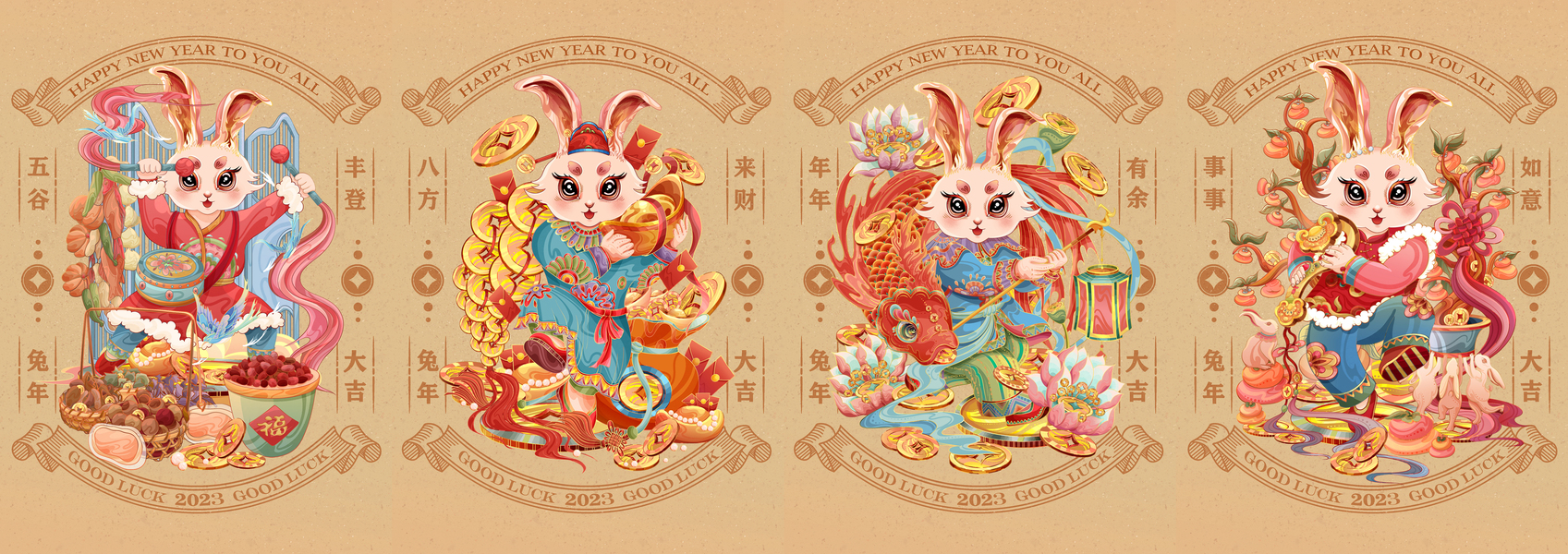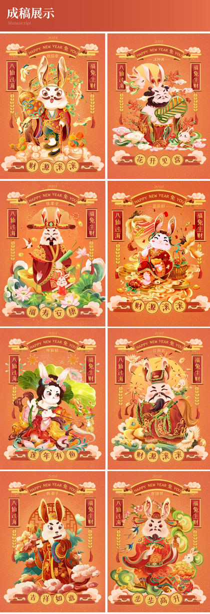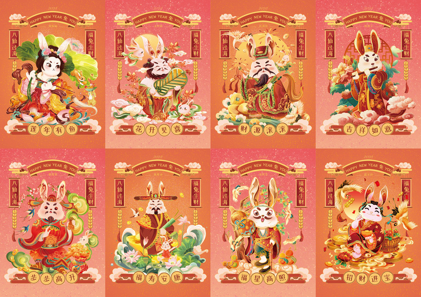 【八仙送福 瑞兔呈祥】2023癸卯兔年IP插画设计