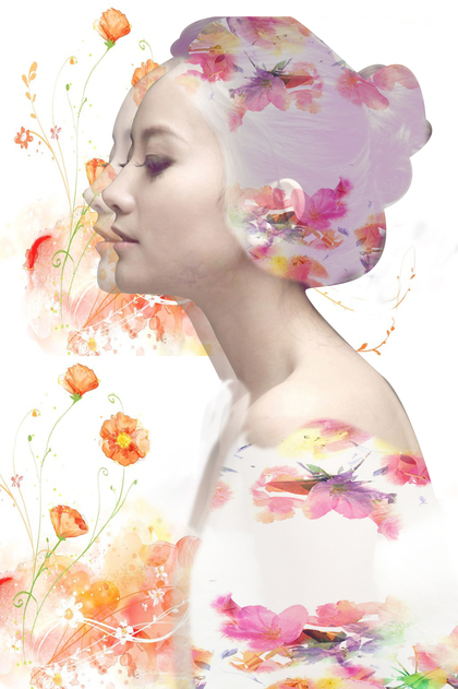花团簇拥的女孩