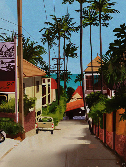 手机壁纸【唯美插画】第3弹【海滨假日1】插画