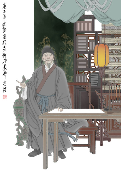 国风人物插画(孔子,关羽,李白,杜甫,张仲景,)