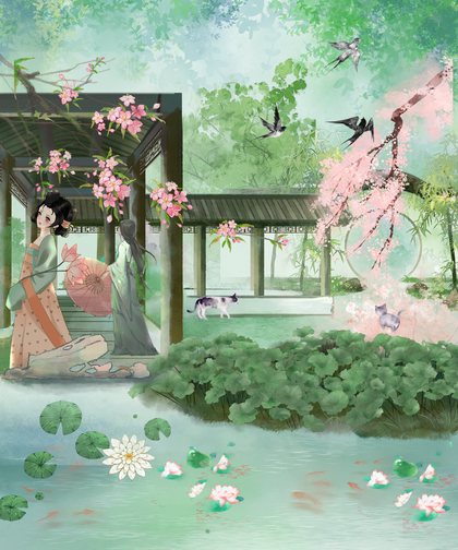 春色满园系列插画原创制作