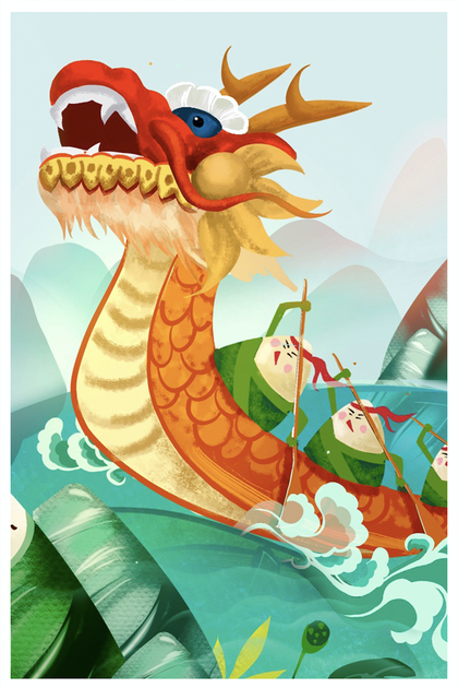迎端午,粽飘香~粽子礼盒插画包装设计