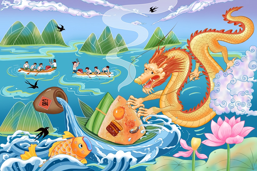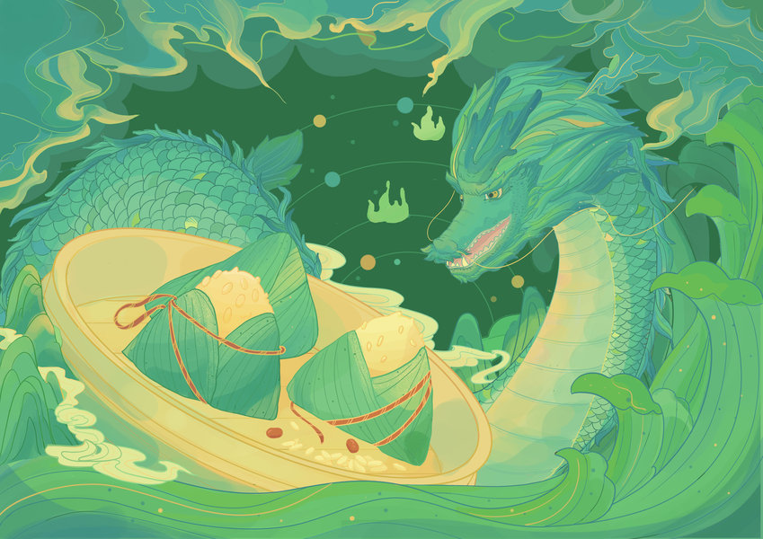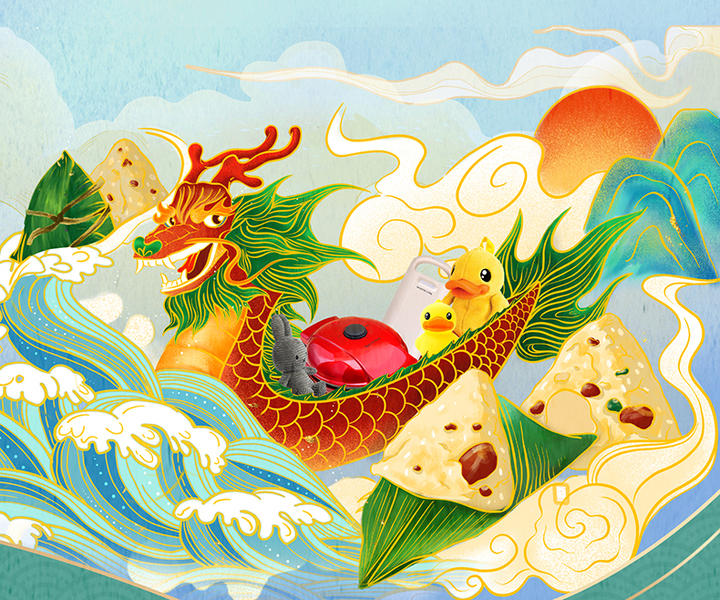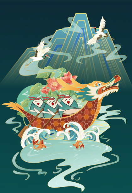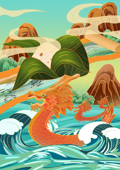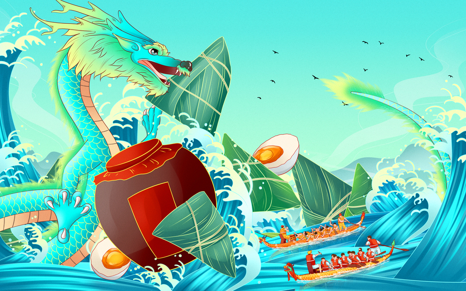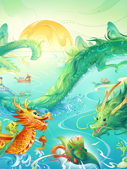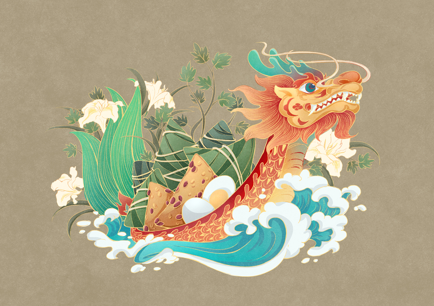 粽享端午--端午节国潮kv主视觉/端午包装插画设计