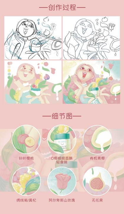 嘉宝X泡泡玛特 618活动页面 KV手绘分享