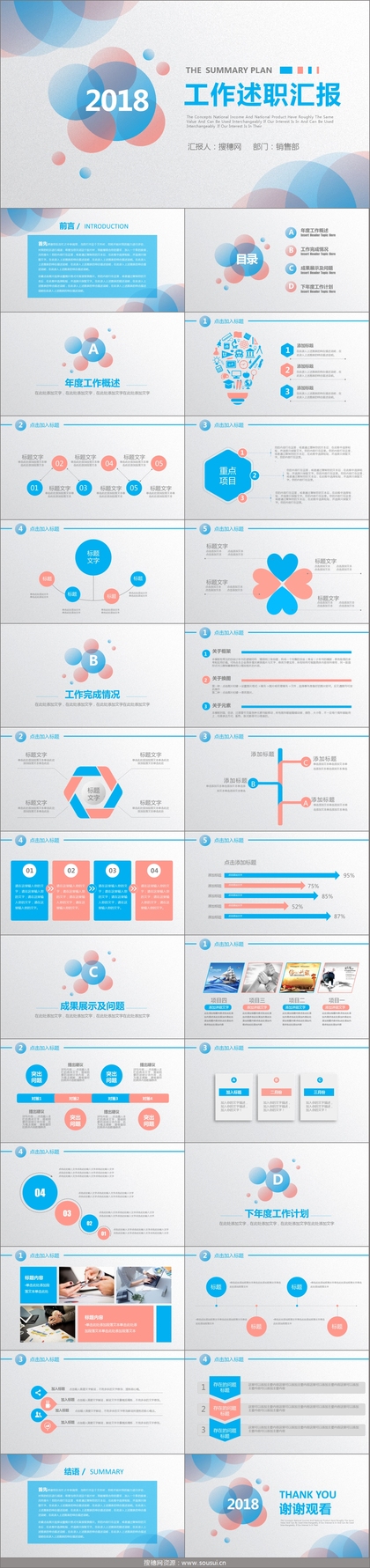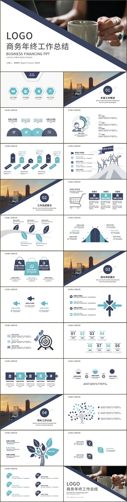 清晰完整商务通用年度工作总结计划报告PPT模板