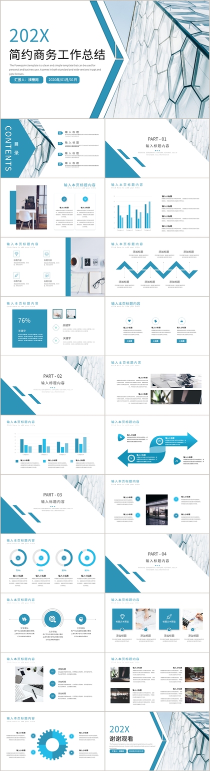 蓝色清晰简约风商务企业工作总结会议报告PPT模板