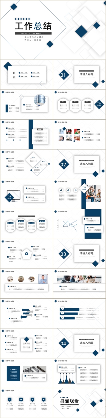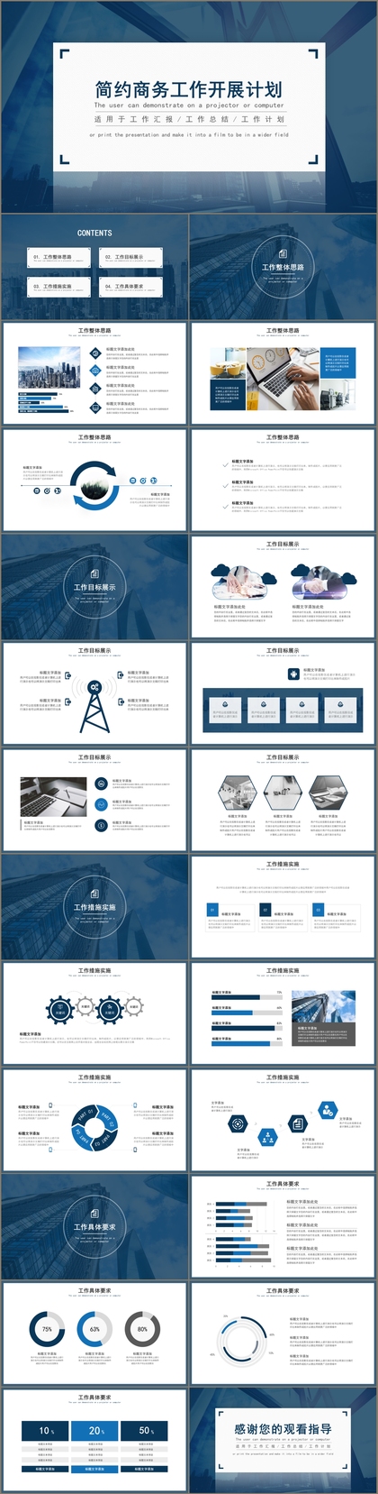 简洁实用蓝色商务工作总结计划项目汇报通用PPT模板