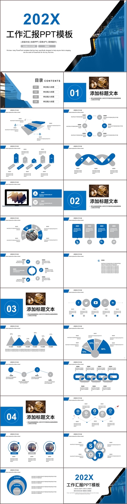 时尚商务风蓝色大气公司企业部门工作总结汇报PPT模板
