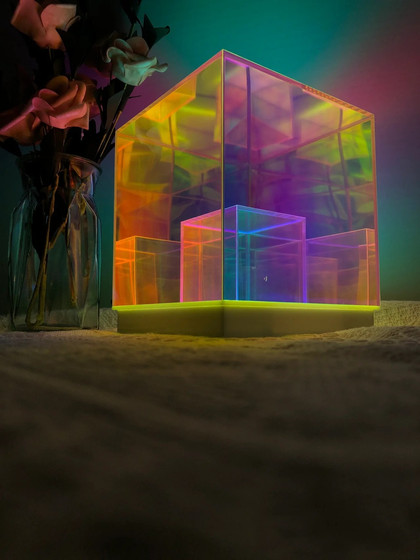 镭射亚克力板炫彩板彩虹异形水晶菱形柱体门店户外定制