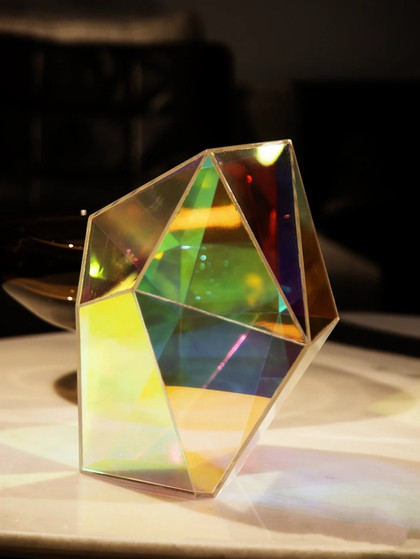 镭射亚克力板炫彩板加工七彩虹异形水晶菱形柱体