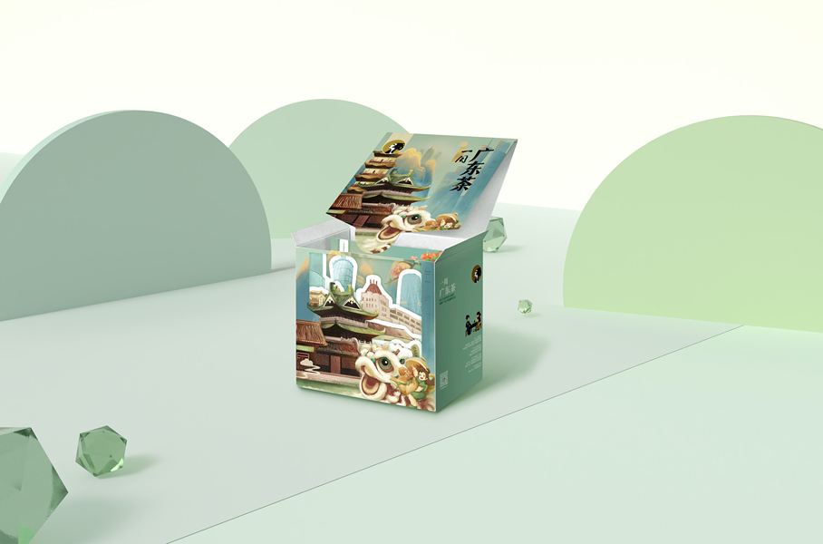 茶理宜世《一周广东茶》新中式插画茶盒及纸杯包装设计