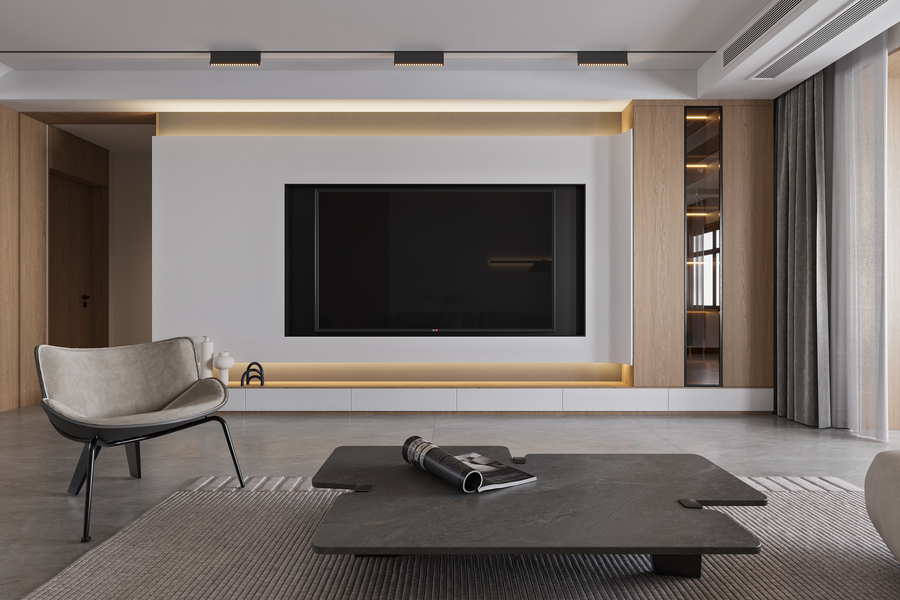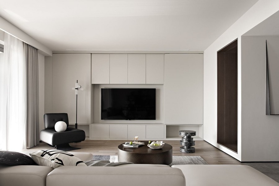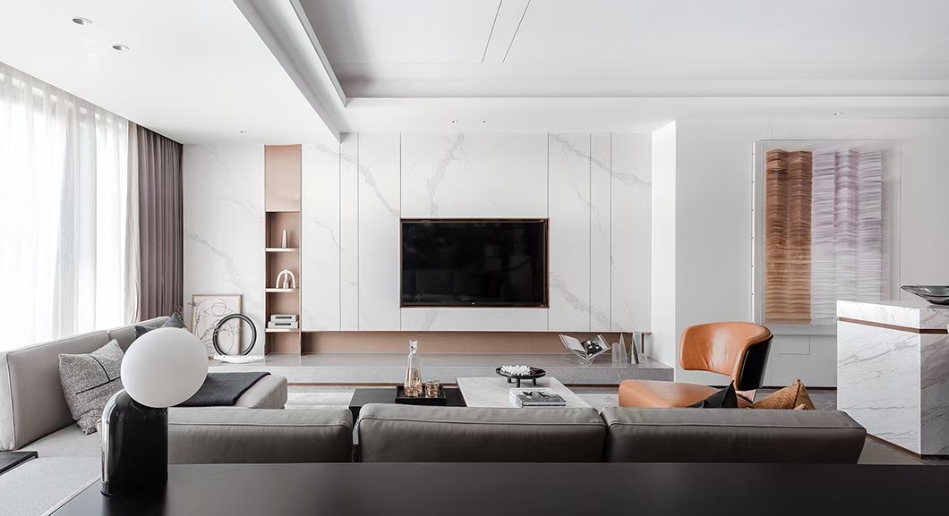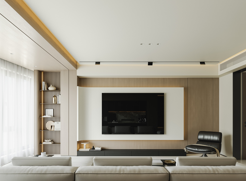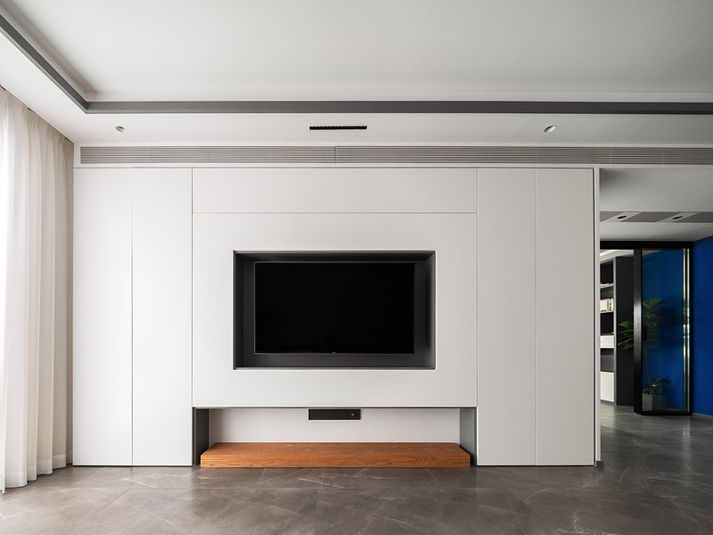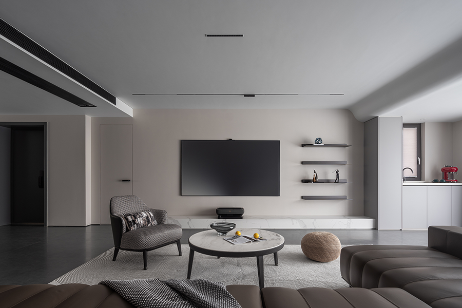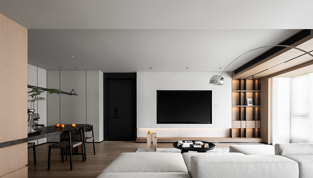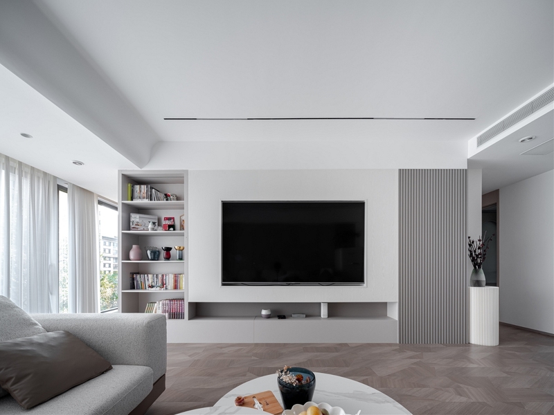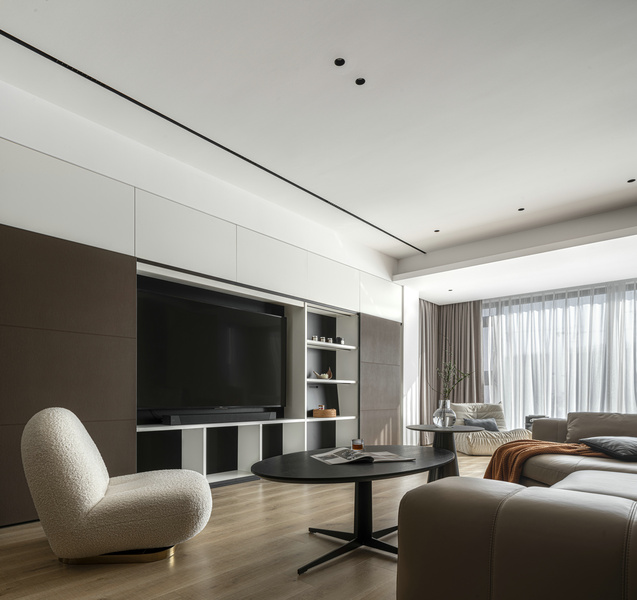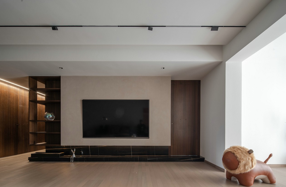 140㎡现代简约风格,一体化客厅背景墙大气时尚!