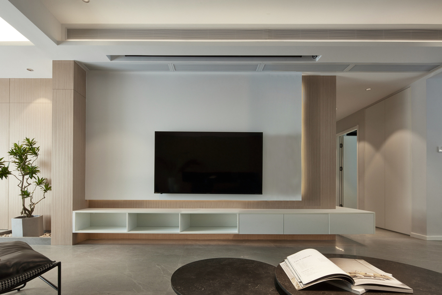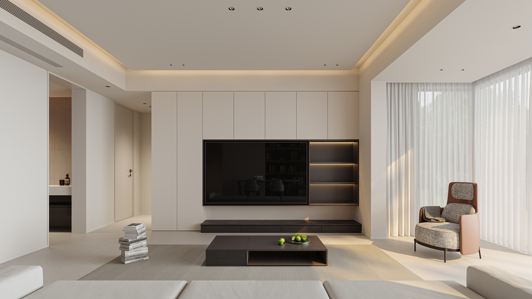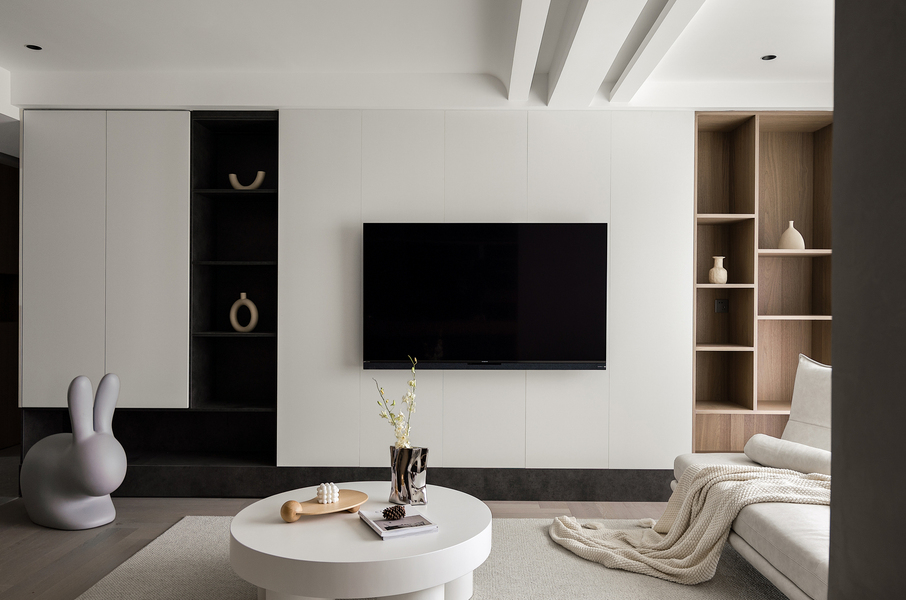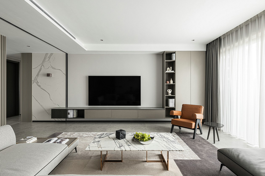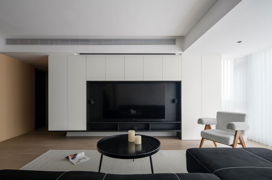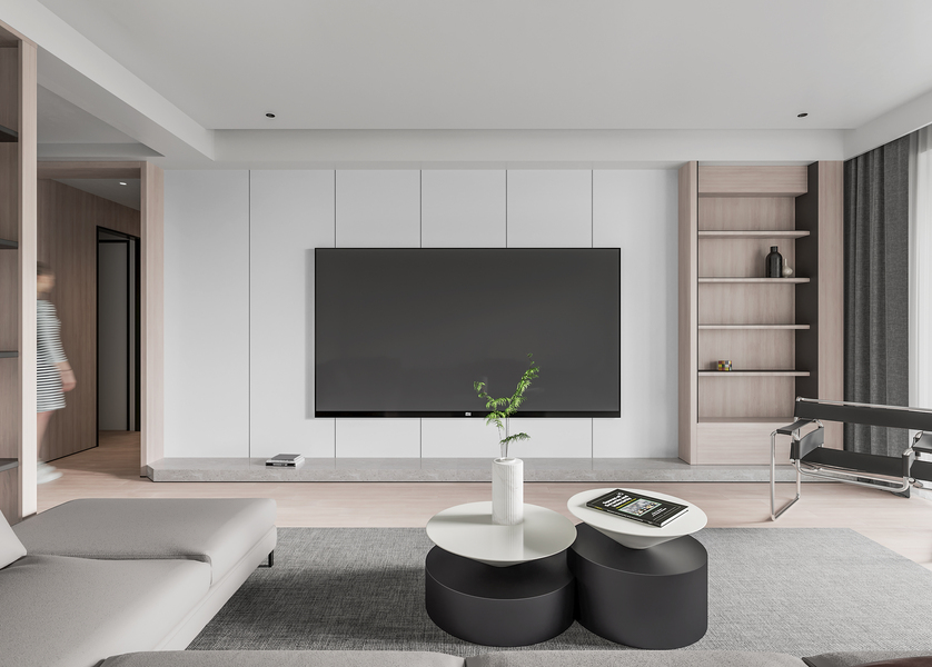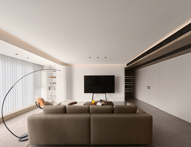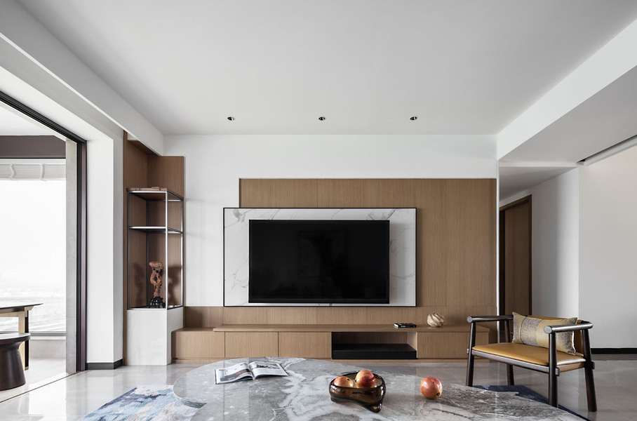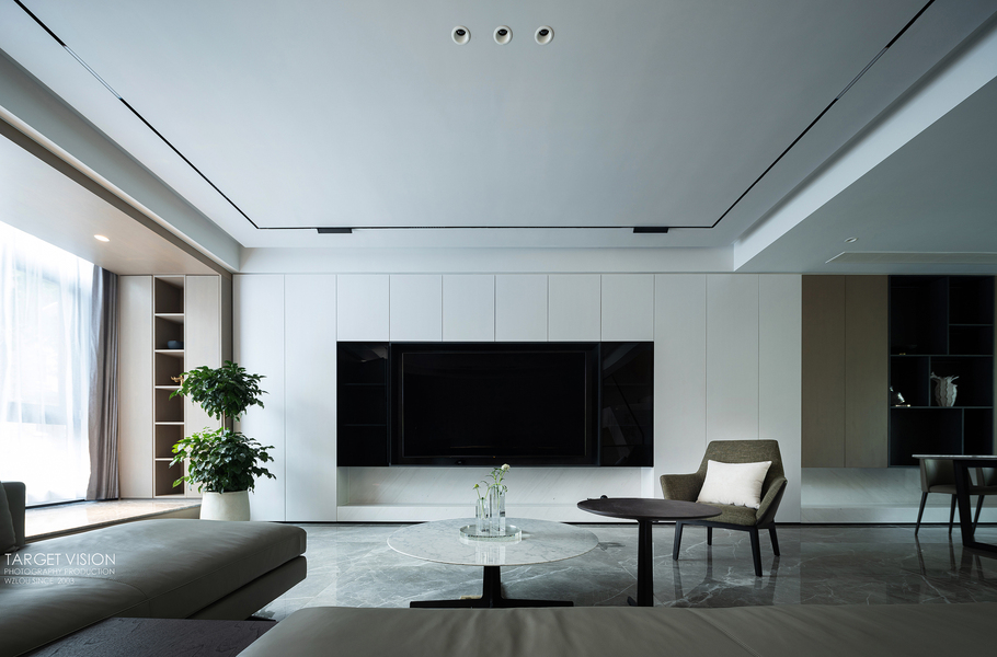 140㎡现代简约风格,一体化客厅背景墙大气时尚!