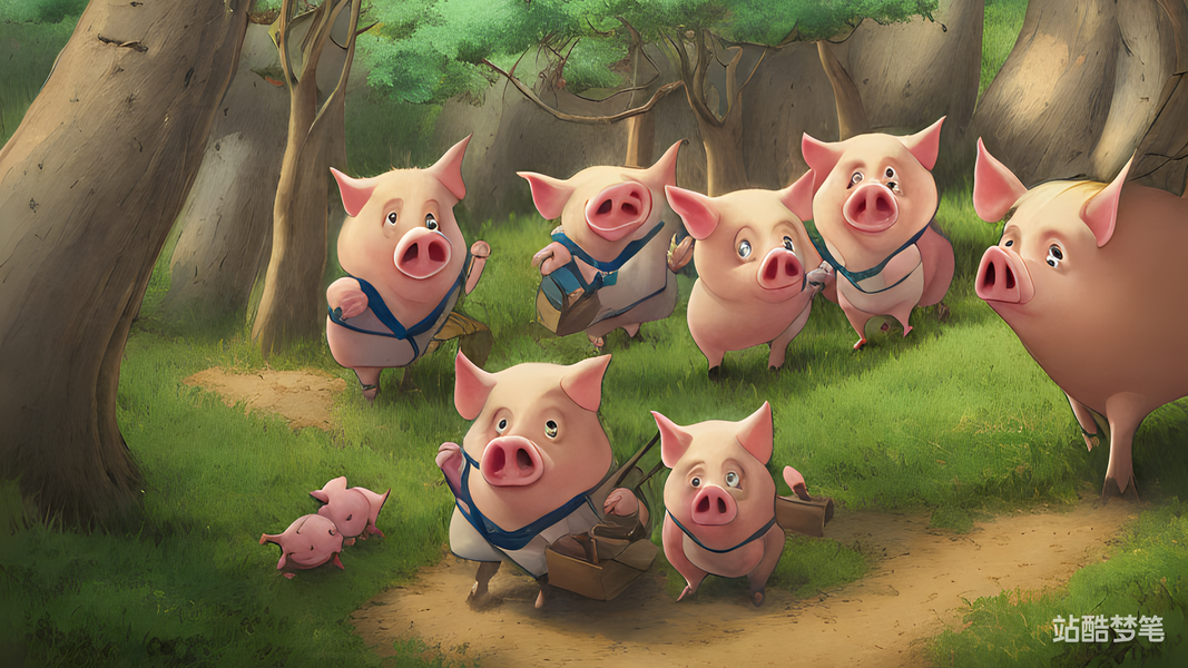 #站酷梦笔#三只小猪,4K,超详细,吉卜力,插画