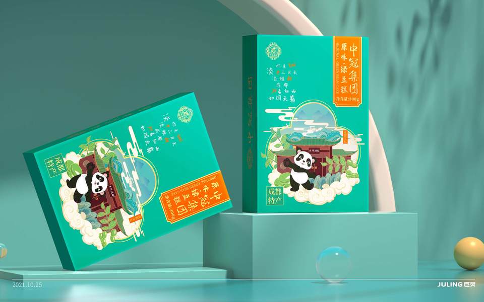 巨灵设计:四川中冠集团绿豆糕闻香酥包装设计方案